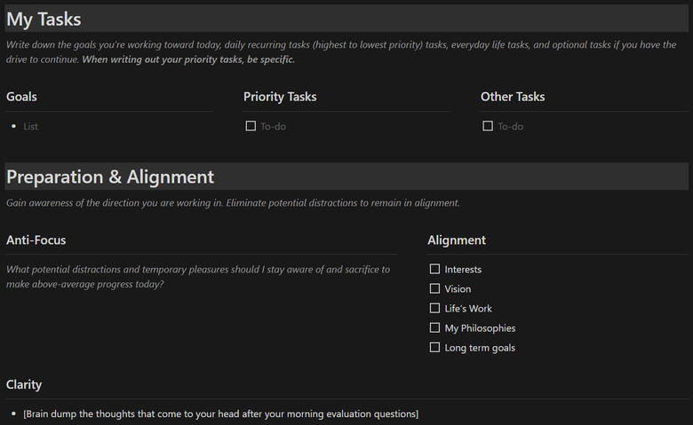 This is where all your progress will stem from.Establish a daily structure that breeds clarity and focus, allowing you to prioritize tasks based exclusively on your goals.
